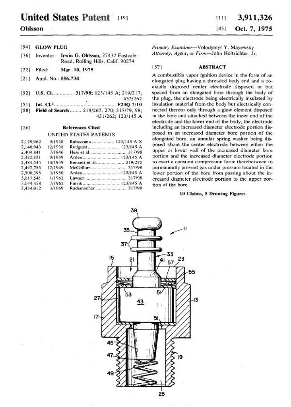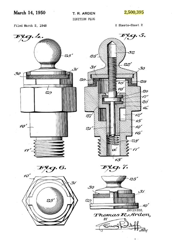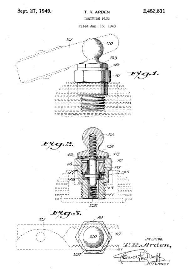 At virtually the same time, Ray Arden patented his version of Howie's "Hot Coil", demonstrating it and selling them from the boot of his car at the 1947 Control Line Junior Air Races held at Cleveland, Ohio. While the idea may not have been new, Arden's execution was. By making his "glow plug" a direct, screw-in replacement for the common spark-plugs of the day, literally thousands of spark plug engines instantly became glow plug engines! This explains why many sparkies today are sans timer assembly—it was thrown away, along with the coil, condenser, and battery. The formal introduction of the "Arden Glow Plug" took place one month later at the 1947 Nationals in Minneapolis [1].