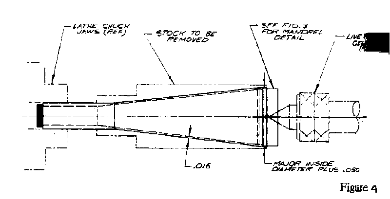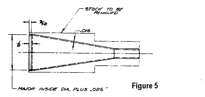 live center. Turn the outside taper to a .016 in, wall thickness. Then