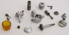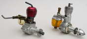 I was surprised at how rough some of the internal machining is. Neither the back face of the front section or the front face of the crankweb are relieved to form a thrust face, and the finish on both faces is poor. The thrust area is the complete crankweb area. Despite some of the rough internal machining, there are some nice details, such as a small flanged brass insert pressed in from the inside of the head for the compression screw, and a screwed-in brass insert in the back of the spinner nut. As stated in the article, all the threads are very fine. The compression screw, crankshaft thread and all the threaded connections on the intake assembly are 1/8" by 70 TPI. The photo here shows the Kalper along side the little French Moustique.