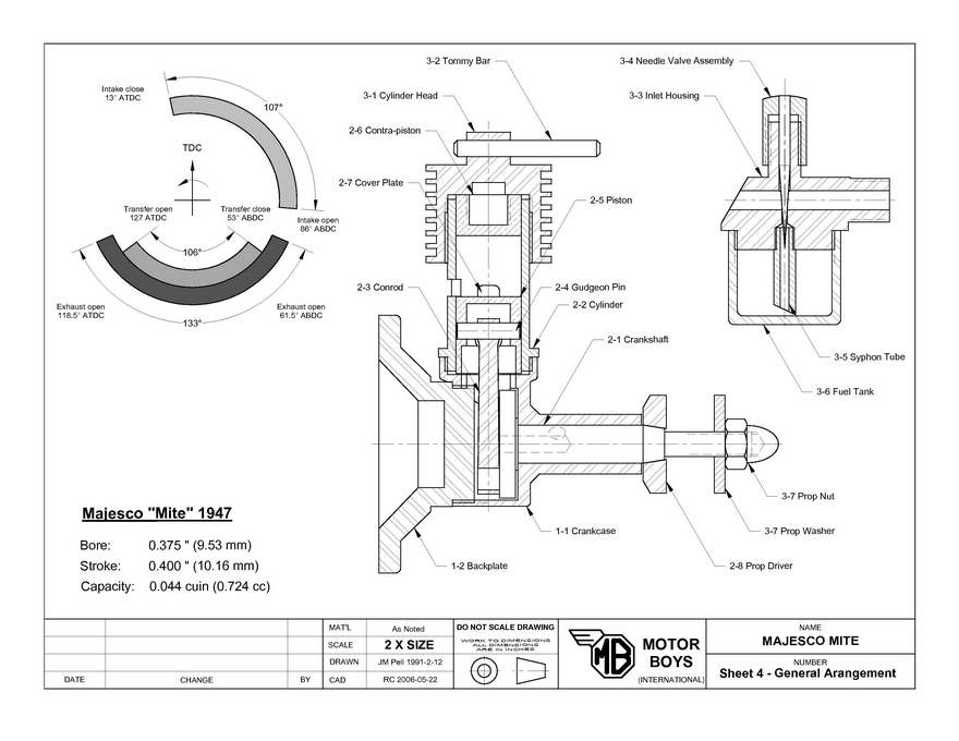 Bowden's Model Diesel Engines (first edition) possibly credits the design of the Mite to a Mr Colyer (p132). Sadly his text also mentions the Milford Mite and the fixed compression Mite, but does not make clear just which Mite Mr Colyer might have designed! At least we know the fixed compression American Mite was designed by Howard Mandiville, so there's a 50% chance Mr Colyer was the designer, although we also know that Ron Warring had some connection with Majesco Motors. If you are confused, so am I.