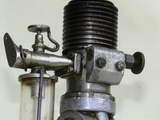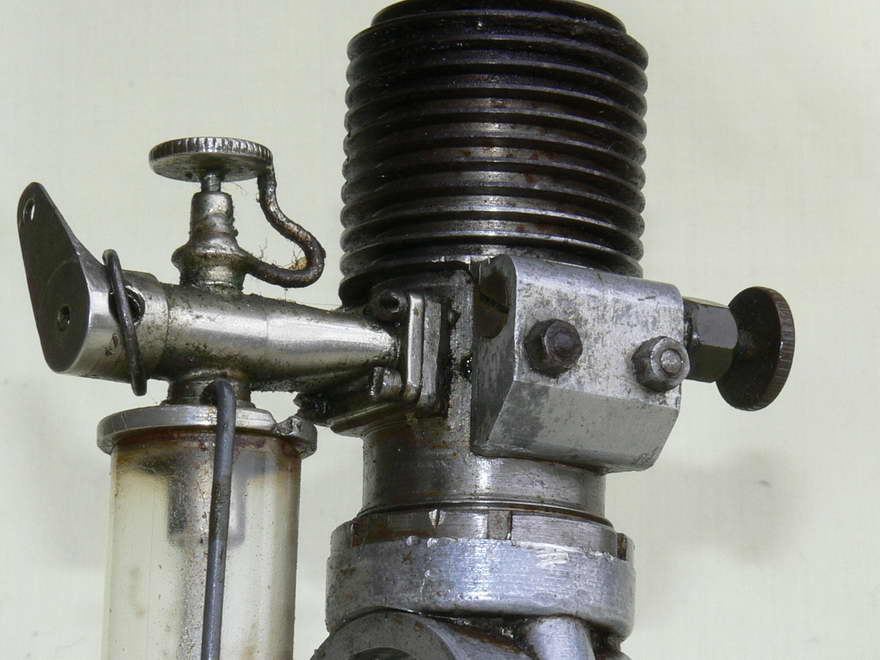 The aluminium piston is fitted with two compression rings and the hardened and ground steel crankshaft runs in a single, rear ballrace and a bronze bush. Most exposed steel parts on the engine are nicely cad-plated to inhibit corrosion. The rear-mounted tank appears to be from glass tubing. As the firm was and still is involved in steam work, it may have been sourced from a sight glass.