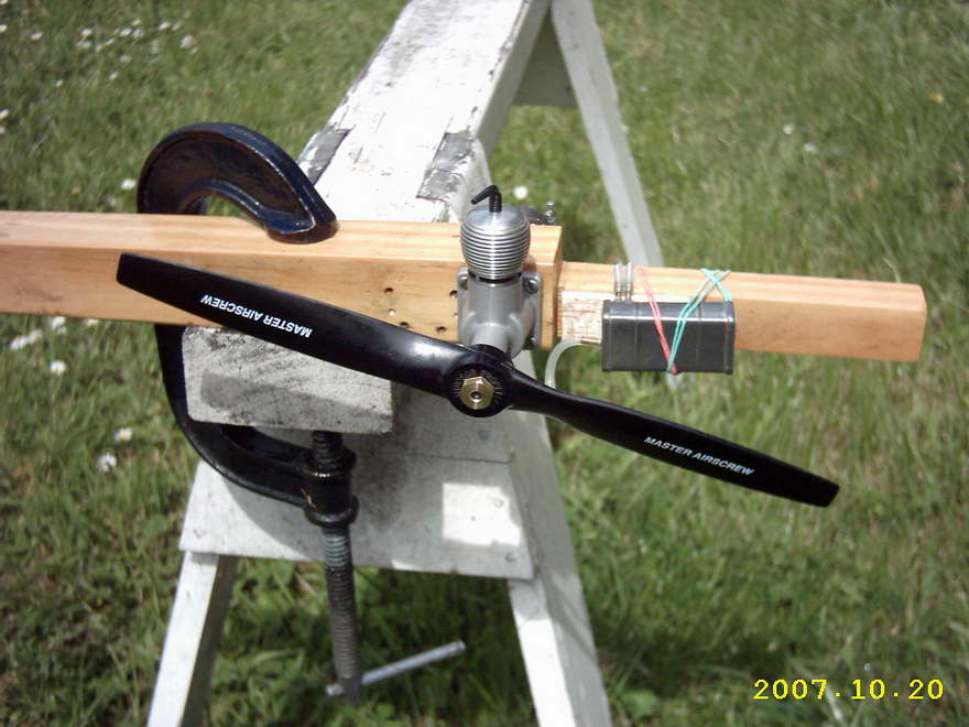 These look quite promising after only 30 minutes running on D1000 mix. With a bit more running and a change to D2000 fuel, a few more revs could be expected. The prop sizes tested represent the most useful sizes for F/F—with a 9x4 being likely to correspond to the BHP peak. A 9x5 may prove a useful size as well, with an 8x6 the obvious choice for C/L