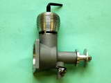 First and foremost, this new replica is a well executed high quality production. Whilst adhering very closely to the original layout, careful attention has been paid to subtly strengthening parts of the original which were prone to damage without creating a bulked out look to the replica. The engine is based around a solidly executed crankcase casting of 29.5g, with a thin-walled bronze bush main bearing. It is unclear whether the bearing was cast in, or shrunk in during the machining process. Externally the finish is a soft matt light grey, obviously produced by fine bead blasting. Internally the case is fully machined with no 'as cast' surfaces visible anywhere. Cylinder and backplate threads are particularly well formed, and cylinder and backplate screw in smoothly with no trace of snatching or binding. The key areas are very solid. The main bearing OD is 14mm resulting a main bearing thickness of 3mm. The cylinder housing has a wall thickness of 1.85 mm. Likewise the rear mounting flange is over 4mm thick and the 3.6mm (9/64") clearance mounting holes are inset a good 2.5mm from the edge of the mounting flange on 26.5mm centres. The mounting layout is square, which is useful, allowing the mounted engine to be reoriented without having to re-drill the mounting holes in the model.