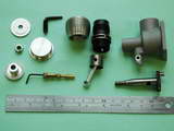 A nicely machined, finely finned screw-on head and fin assembly completes the engine. This has an internal boss to provide additional comp screw thread depth—which is just as well, as the 5mm thread single sided compression screw is a relatively slack fit in the head threads. A locking bar will probably prove necessary. Comp screw is the traditional radial Elfin engine—slightly tapered, with the adjusting lever angled slightly upwards.