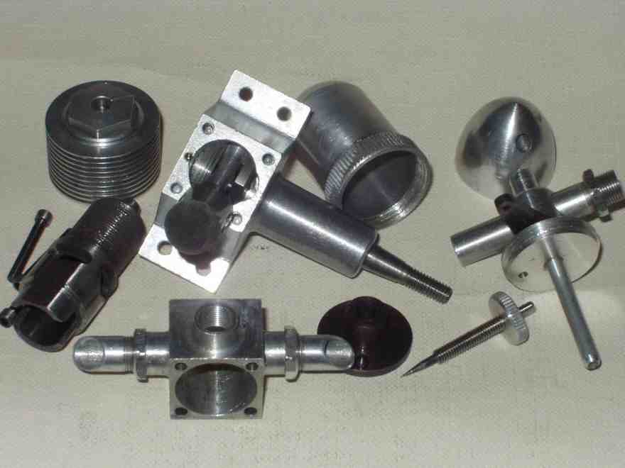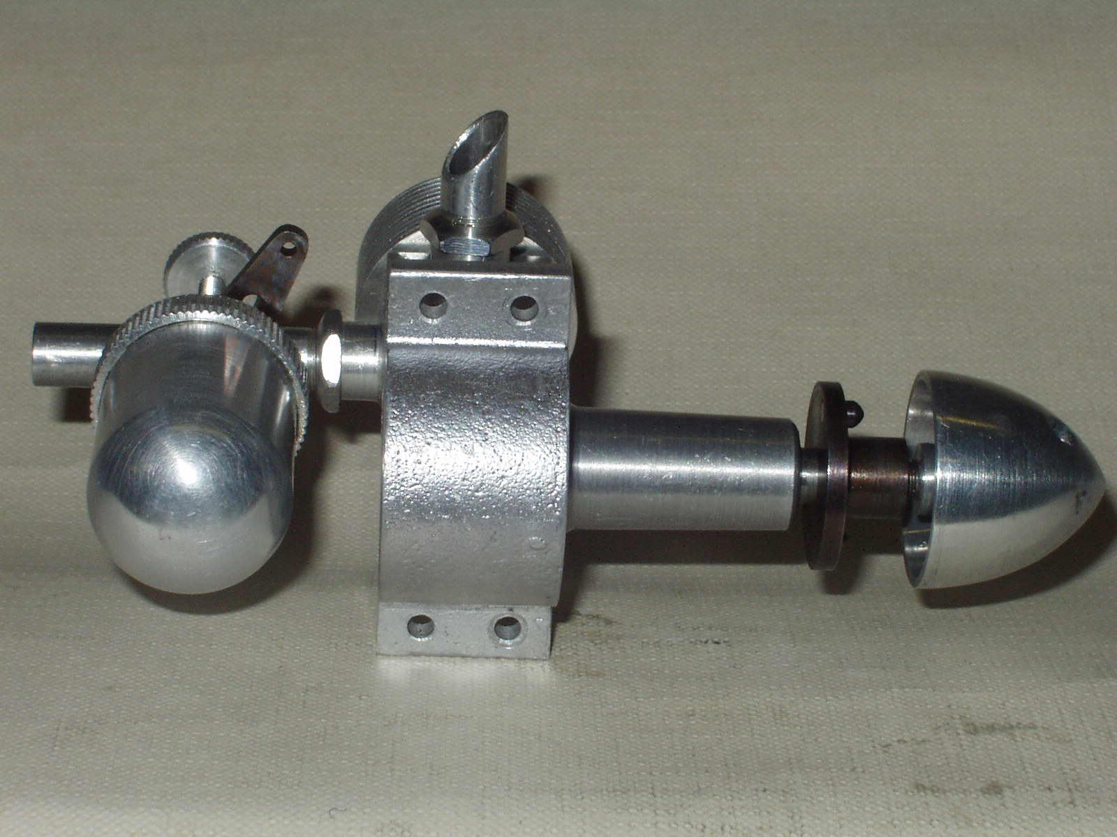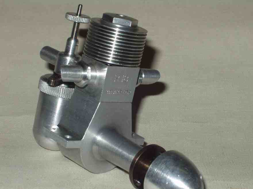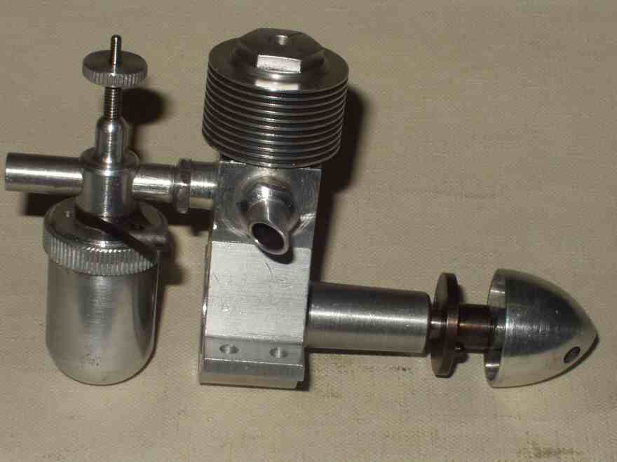 The large fuel tank is an aluminium pressing, retained by with a knurled ring with a coarse thread. The prop driver and cut out lever are steel with a brown gunmetal finish.