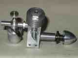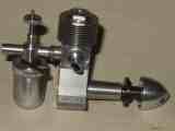 Despite its venerable age, the engine pictured here is New In Box (NIB). The instructions state that the engine is to be treated as if it were a fixed compression diesel, changing the compression only for different fuel formulations. This was probably a good thing as the contra-piston is a sandwich of lead alloy and steel which was free to move when cold but expanded to give a gas tight seal when running! Add to this the clumsy method of adjustment with a box spanner and fixed compression operation becomes an attractive option. The recommended fuel mix specified a rather high ether content: six parts ether, three parts diesel, two parts castor oil. The oil content is low, but diesel fuel is 'oily' which may have helped. Performance with a 10x5 prop quoted by the maker was 7,500 rpm at which 26 ounces of thrust were to be expected.