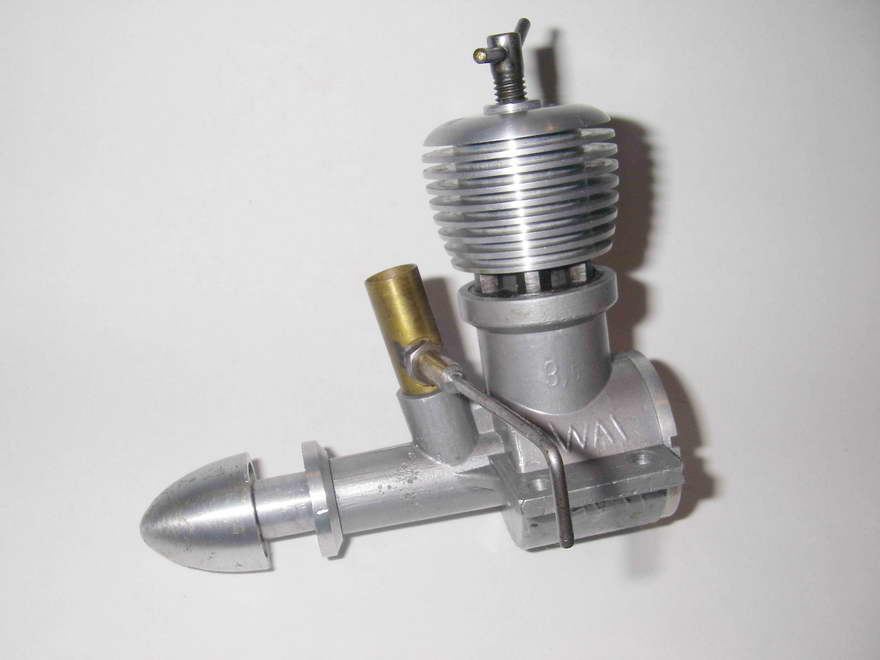 Visually and structurally, it is pretty much exactly like a scaled-up WAF-1, the giveaway being the extended, brass venture intake and the "3.5" embossing on the left side of the crankcase. It retains the characteristic "assymmetric bend" comp screw of the WAF-1, the bend at one end presumably being intended to eliminate ambiguity regarding the comp setting. Internally, the porting arrangements are identical to those reported in Model Aircraft for the WAF-1.