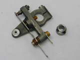 The arm can now be clamped in the mill vice to mill the top of the spring attachment and adjustable point bosses flat. At the same setting, drill and tap the spring and fixed point holes 6BA, spaced 1-1/4" apart. Drill and ream the hole for the actuating rod over the center line of the bored mounting hole. This not because any precision is required, but simply to ensure a smooth, low friction and low wear finish for the fibre actuating rod. Finally the frame is rotated 90° for drilling, counter drilling, and tapping the clamp bolt hole (also 6BA). The frame can then be slit at the bottom to allow the clamping bolt to draw the sides together.
