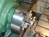 The timer can now be parted from its spiggot. You'll find that the casting is oversize in all dimensions with respect to the drawing, so don't worry about maintaining the stated 1/2" distance. Just part-off where the casting ends and counterbore the side facing the cover later to bring the outer face in line with the end of the cam bush.