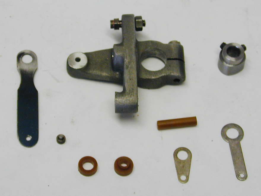 Whippet's timer is a simple, open design that uses a leaf-spring contact that is insulated from the timer body. This is actuated by an insulated push rod bearing against a steel cam which is attached semi-permanently to the end of the camshaft by a taper pin. The timer frame is lightly clamped to the rear camshaft bush that protrudes from the timing gear cover. By adjusting the clamping bolt, sufficient friction is obtained to hold it in position, while allowing advance and retard movement through pressure on the vertical arm cast into the frame. This design, with minor variations, was used by ETW on many of his designs. It was simple and effective in its day, but now suffers from one major drawback: the tungsten tipped points specified are nearly impossible to obtain! I'm lucky to have stockpiled a small supply of these a long time ago, but that is no help to others, so this page will first detail the traditional "per the plans" timer, with tungsten tipped points, then look at replacing this with a thoroughly modern Hall-effect alternative.