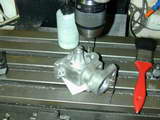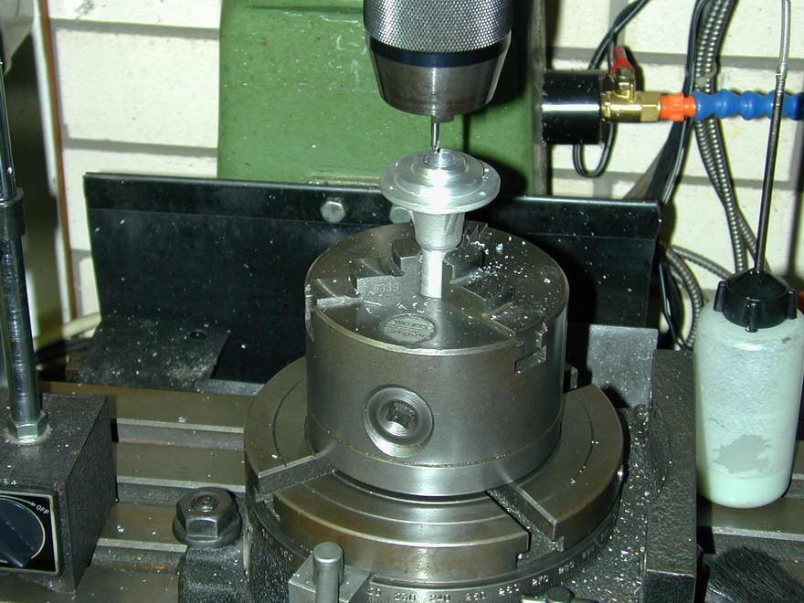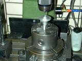 With accelerant, Loctite can attain 90% of ultimate strength in a hour. Without, you may get 80% a day later—consult the data sheets (available on line). So I did something else for a day, then machined the spigot, composed in equal parts of cast and inserted material, to a close fit in the crankcase. At the same setting, the nose was drilled and reamed for the bushings. The Flange OD was brought to final size and the front face rounded.
