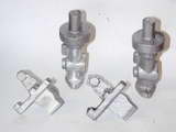 Two arms were made at the same time and finally milled, drilled, and tapped for the clamping bolt and actuating cable attachment. They were then separated and the end slit per the drawing.