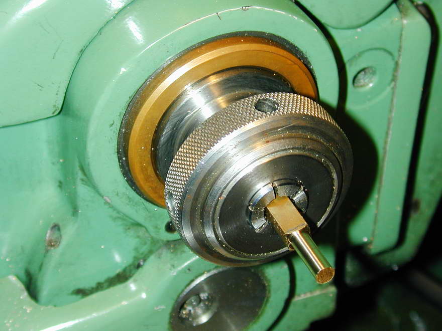 To finish the inlet side, a 1/4" mandrel is is wrung into the brass part of the bore allowing the casting to be bell-mouthed and faced. The exit was noticeably off center, but with some creative turning and polishing, it was possible to obscure this small defect adequately.