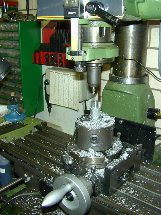 Some marking out is essential here to establish the best compromise location for the barrel bore that centralizes it in the boss and carburettor bore axis. The casting is then gripped in the four jaw chuck, aligned so that the mounting ears are level. The marked position is then set on the lathe axis with a wobbler. The casting can then be faced, blind bored, and finally drilled through and tapped (3/16 x 40TPI ME series) for the jet assembly. I made a bit of a booboo here by following the plan dimension for the depth of the bore rather than measuring the casting. Had I done this, I'd have found that the casting was way over size and that the bore should have gone about 50 thou deeper. I got away with it, but the passage in my throttle barrel is very close to the bottom edge of the barrel. Lesson: assume all dimensions of the castings are wrong and make liberal measurements and notes on the plans.