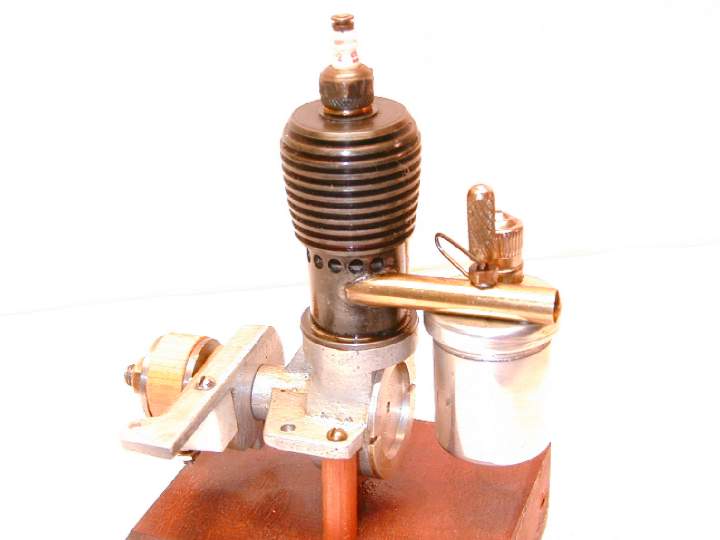 The Victor was designed from scratch in 1999 to provide a simple, good running example of a traditional piston ported ignition engine. It has a displacement of .098 cu. in. The design concept was borrowed from a homebuilt engine discovered by Vic Diodelot. My prototype will turn about 7500 rpm using an 8 x 4 propellor.