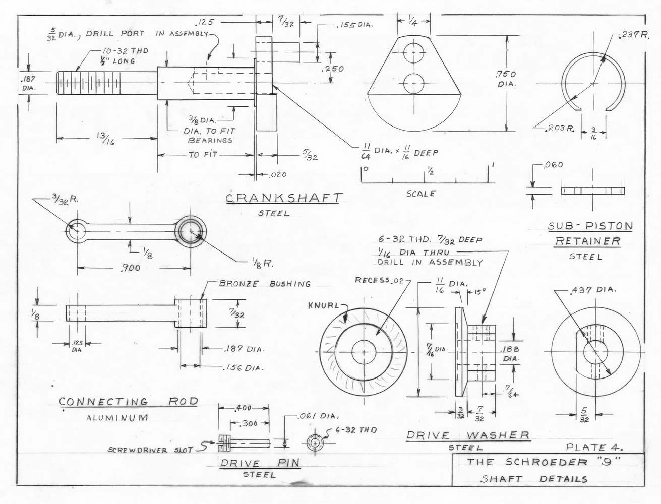 We are now going to construct the crankshaft plus some other miscellaneous parts. About now I can really appreciate the low cost of factory made engines. The time and effort required to make individual parts with limited facilities is tremendous. Our "store bought" engines are quite a bargain!