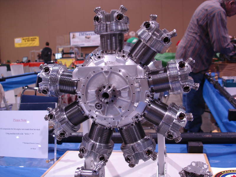 Photos 1 through 17 were send in by Canadian Member, Dave Sage. They show the quarter scale Bristol Mercury made by fellow countryman, Ian Wynd, a member of the Hamilton Model Engineering Club of Hamilton Ontario Canada. His nine cylinder radial is superb piece of work. Other photos in the set show a flying example of Westland Lysander (aka the "Lizzy") which was powered by this engine. Note that the exhaust and inlet ports are at the front of the engine. The coppery colored edge of the engine cowling is the actual exhaust collector ring, known as a Townsend Ring" after its designer. This places the shape and heat exchange improces overall engine cooling and the color is due to heat. I've always thought this was a very clever piece of engineering.