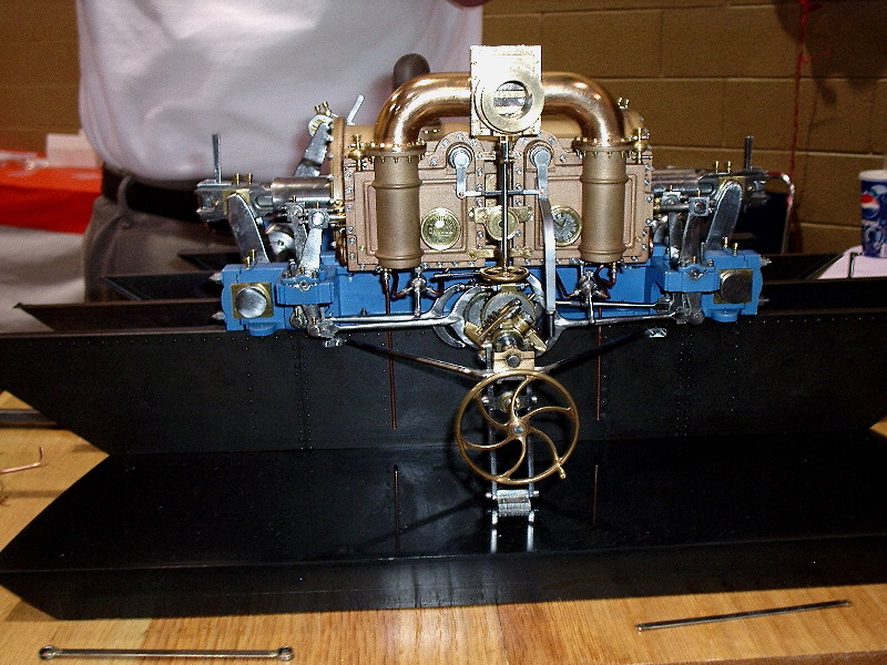 Photos 18 through 33 come from our own Les Stone who displayed some of his own engines, always prepared to show standard. This year, the generous folk at Sherline Machine Tools were awarding prizes for examples of model engineering that fit with a cube, four inches per side. Les entered his Elf Goose-egg 4 and Original Ohlsson, receiving enough loot in return to pay for his accommodation. We won't get rich in this business, but we do have a lot of fun. Now some notes on Les' pictures. As he says, a number are the usual suspects that have appeared at other shows. These are very fine models—otherwise they would not be here—but we'll confine the notes to newer subjects: