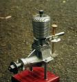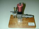 This was the first engine I made. The plaque on the stand proudly states, "April, 1996", which is why I must continue to call myself a beginner at this craft. However, it ran and that was a big thrill for me, even if the skin on the rice pudding was in no immediate danger. I purchased the kit and plans for the engine from Woking Precision Models in the UK and doubting my ability to complete it without some kind of disaster, acquired a second set as a spare at the same time. In the event, the first was completed with only the con rod needing replacement when the first was thrown across the shop by the buffing wheel and never seen again! So the second has sat quietly under the bench ever since, waiting to be built as a real .8cc. The photo here is of my first engine.
