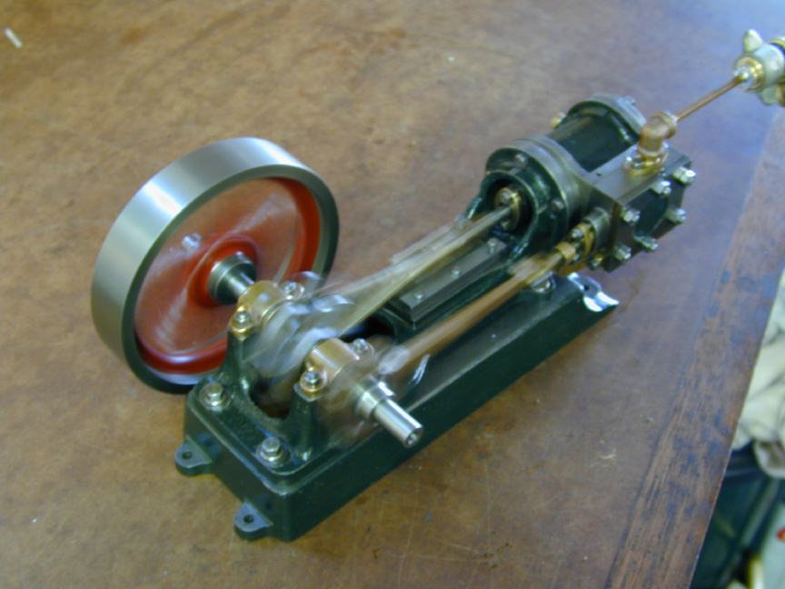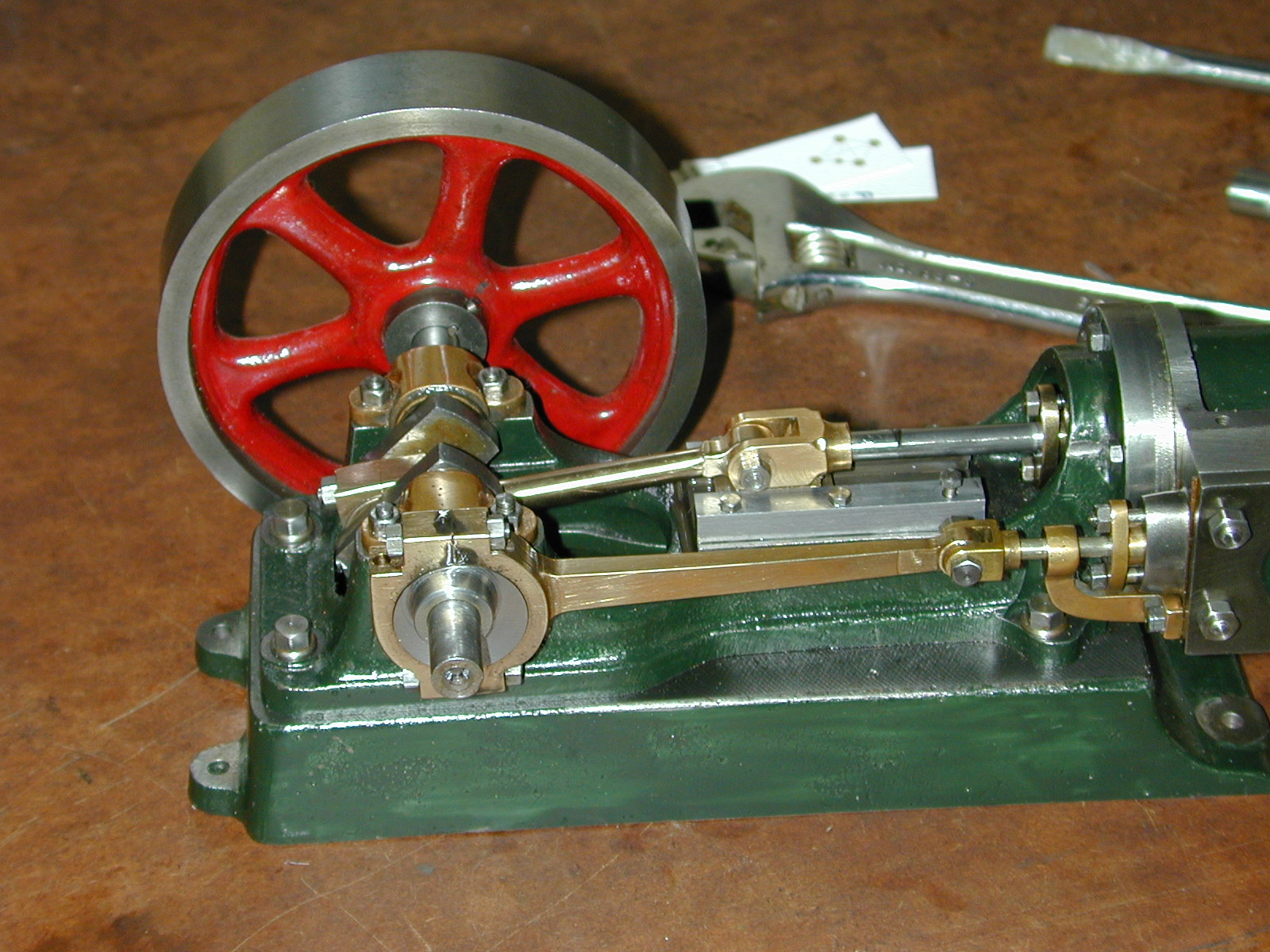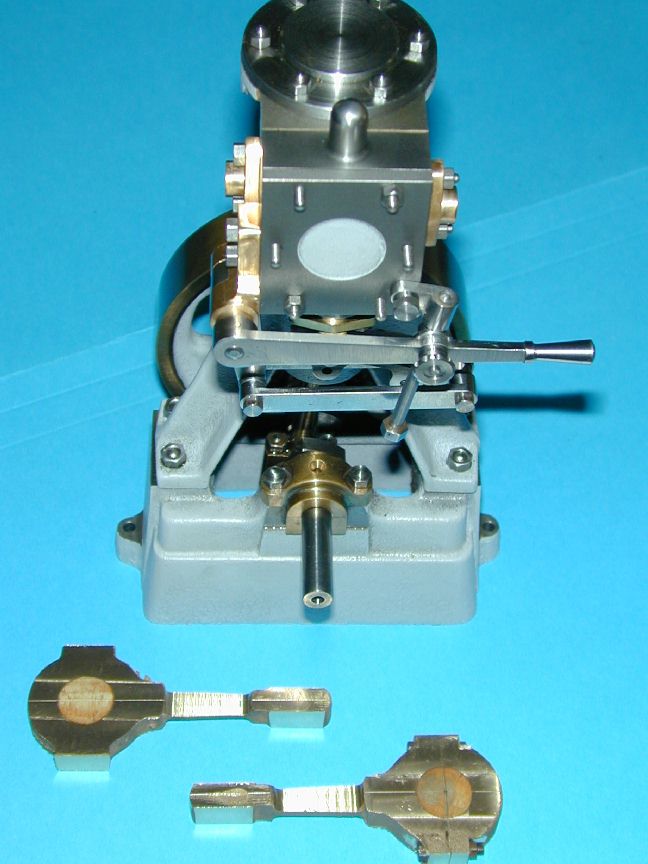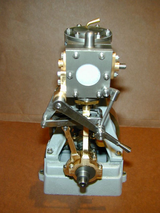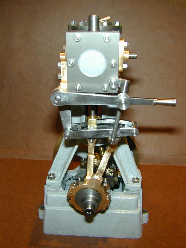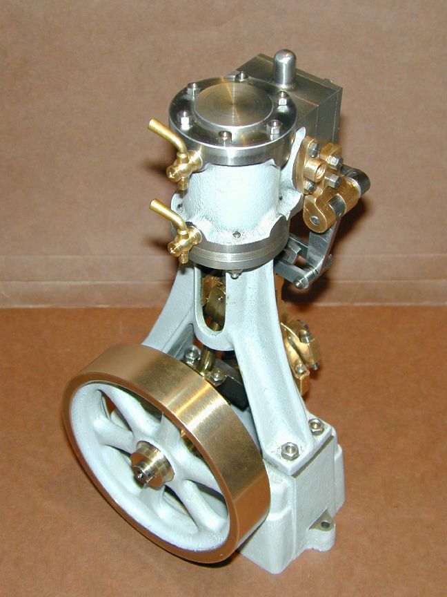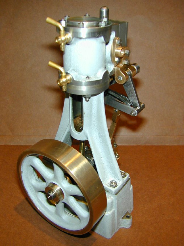 No, I've not gone over to the dark side, I've merely paid a brief visit. These pictures were taken as "progress" shots for the owner and show two steam engines I made in return for some IC engine castings. The horizontal "mill" type engine is a Stuart #8, 1" bore and stroke. It was mostly finished by someone else. I made the rods, crosshead and guides and ecentric. The vertical marine plant is a Stuart #7A. This I made from the raw castings kit (I still don't believe how much effort went into the reversing gear!) Time to complete it to this stage totals about 120 hours. It also has a 1" bore and stroke. While both engines are listed in the current Stuart catalog, their web site suggests they no longer supply these engines. Pity. I think their next size up is too big and their next size down, the "10" series, looks too much like a model. Doubt I'll make any more, but these sure are nice to look at...