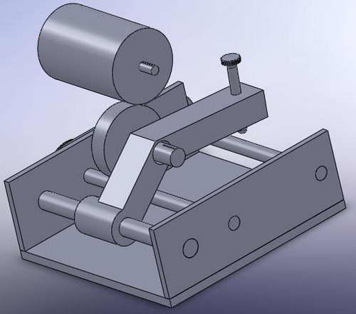 Some means to set the distance between the wheel and the work must be provided. Chris has used a simple bolt that pulls the pivoting arm closer to the follower against spring tension. This will work fine and even a coarse thread will provide fine adjustment. It does not need to be calibrated, although some designs incorporate a DTI to assist repeatability on multiple lobe cams.