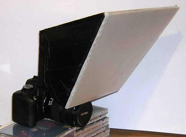 I used the light box designed by Roger for quite a while, but it was a big thing and took up valuable space. Then I tried Bert's method with a couple of lamps, but this had to be set up every time and was a pain because I do not have a lot of spare space at home. I've evolved a setup that produces well-lit, shadow-free shots that is always waiting to be used with no hassle. I call it a "softbox".