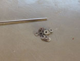 In this photo we see a piece of 3/32" piano wire and a pile of common, stamped, 3/32" ID steel washers. The wire has been cleaned on the end with 220 grit glass paper is bright, shiny, and free from oil, corrosion, rust and other evil solder resisting agents. The washers are awful. They were born awful, and as they are, solder will not touch them, so we need to clean at least one side. Rubbing the washer against an abrasive such as fine sand paper, or a mill-cut file is the obvious remedy, but how to hold the little blighter while exerting sufficient force to get down to the base metal is, I'll admit, not that easy. The same applies to plated washers. Even with bright nickel plating, it's best to get down under it before soldering.