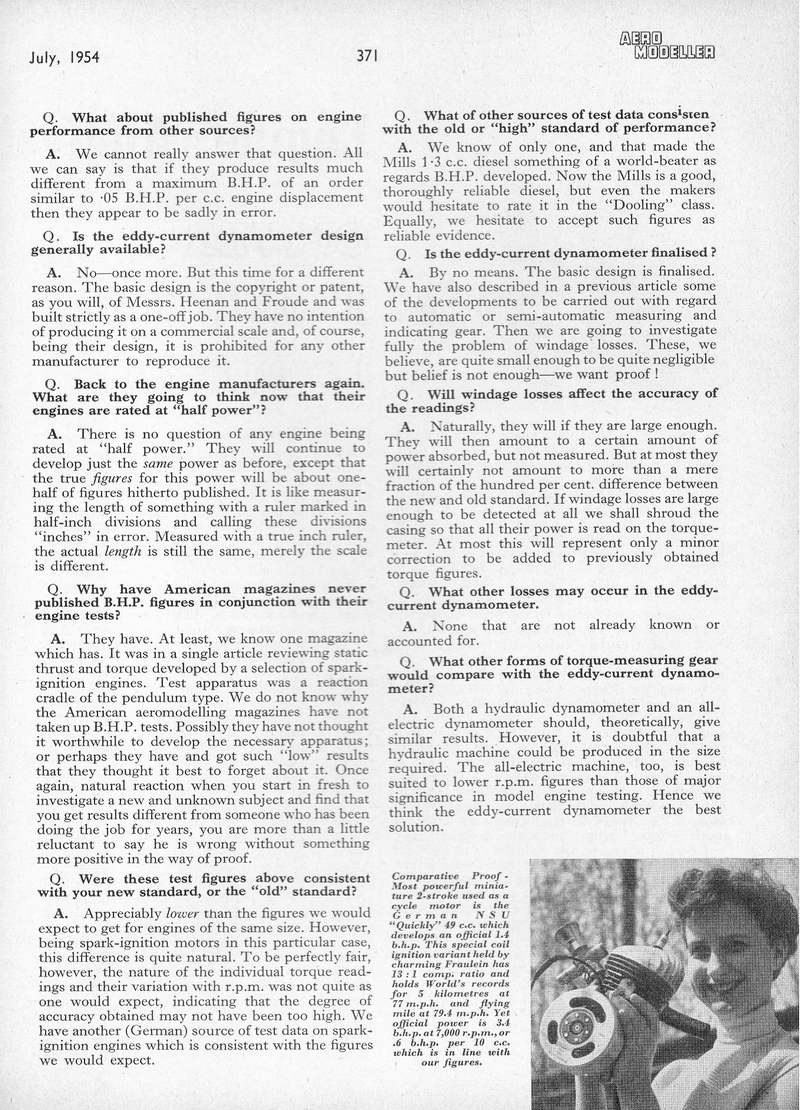 This is a tricky subject. With a few exceptions, it is also a subject whose secrets have been rather closely guarded by those who have made a career of it through the model press. But if the experimental process is not disclosed, what faith can we have in the results? Conversely, does it matter? If engine reviewer X uses the same technique for all his tests, a comparison of the numbers rather than the numbers themselves can be a reasonably reliable performance indication. But as pointed out by Gordon Cornell, peak torque and BHP are only part of the story; how many times do you see a figure quoted for fuel consumption?