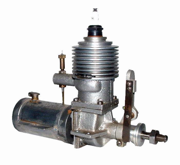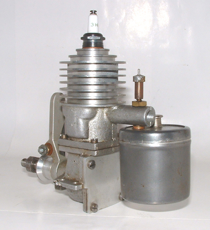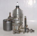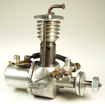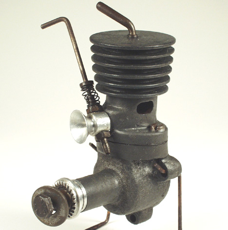 Time has a habit of increasing knowledge, and if you are lucky, wisdom too. Tim emailed his own answer to this one years later: they are the 1946 Apex .447 engines, originally offered as kit engines, but also actually sold as finished items too. The Apex Skylark is the best known of the group and then there was an Apex 120 which would pass for a bloated Forster Little Hercules .99 unless you looked real close. Now you know and the original guess of a "home-built" might be right—at least the new pic Tim supplied does not use a piece of Junior hacksaw blade as the timer spring!