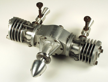 A couple of years or more ago I sent out two pictures of home built engines I had purchased from the Frank Ehling collection. Frank could not remember anything about them except that their transfer to him was arranged many years ago by Ron Moulton. There was a little single and a twin, both very well made, but the twin was unfinished. The single is 2.2cc and has a home built plug with a mica insulator. The plug is 1/4x38 TPI. The twin was without plugs, but was threaded to the same size, 1/4x38 and from that I assumed they were probably by the same maker. It turns out that I was right. By an odd set of circumstances, I now know who made these engines and when they were made.