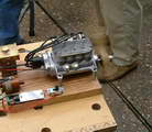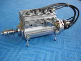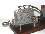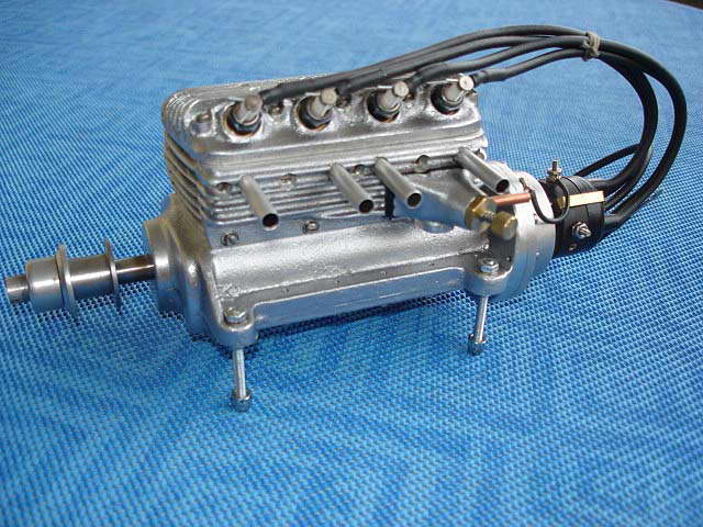 The concept of a four cylinder, in-line four-cycle engine for use in model cars and boats followed logically after the five cylinder radial Morton M5 for aircraft. Work on the M4 started in 1944 under Glen Morton's uncle, Bill Morton. Where practical, he decided that the engine should share components from the M5, like the pistons, wrist pins, carburettor, and ignition system (obviously with a different distributor cap). The engine used a rotary valve that was the cause of problems and the eventual abandonment of the project. No engines were produced, but evidently some preliminary drawings and sand castings "escaped", allowing some amateurs to build examples. Undeterred, work commenced on a second version that utilized a more conventional cam sfaft actuating side valves. The only M5 components used were pistons, ignition harness, and perhaps valves. Although announced to dealers, the engine never reached production, nor were any detailed drawings completed [1]. But examples exist as evidenced by the photos on this page. We'll come to that later.