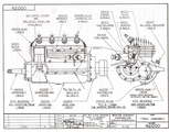 This drawing is the only engineering drawing known to exist; no details of parts, nor any dimensions have ever been found. It shows what at first looks like a straight forward design with a double throw crank supported fore and aft by ball races. The conrods have split big-ends and flat crown pistons. The crankcase is split horizontally along the shaft axis. The other castings are a one-piece cylinder head, gear-case cover, and inlet/exhaust manifold with integral carburettor. Notations credit the drawing to RG Scheeler dated 1944-08-23, revised on 1944-10-17. The drawing was checked by WC Morton (Bill) and approved by GR Morton (Glen).