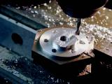 Last operation for this setup is drill #2 for a depth just greater than the finished length, counter bore with a 1/2" slot drill, and finally tap 1/4-32 (the standard glow-plug thread). We also take the opportunity to give the head a good polish with "Braso" or something similar at this stage. An anodized finish will reflect, if you'll pardon the pun, the finish of the aluminum. Come to think of it, Glow Chief were all a bit dull, so maybe I should have left the head "as cut".