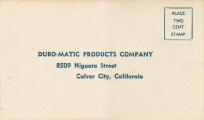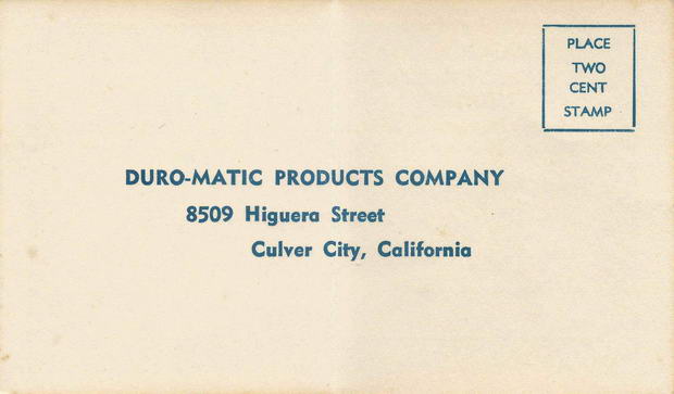 The McCoy .049 "Duro-Glo" diesel model which introduced the McCoy diesel range was in fact the first product to be sold under the new company's banner, being placed on the market in early 1953. The engine's name hinted at its Duro-matic origins, and there's no doubt that it was in fact manufactured by Duro-matic—the guarantee card included with the engines was actually addressed to the Duro-matic Products Company at the same Higuera Street address! It should be recalled that Dick McCoy was still employed full-time at the HW Loud Machine Works Inc. as of 1953 and was therefore in no position to undertake large-scale commercial-scale model engine manufacture in his own right.