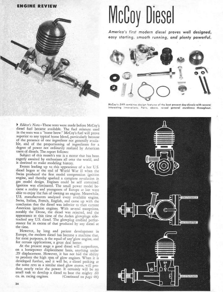 The model diesel engine is universally recognized as a wartime European innovation and there's no doubt that its practical application and long-term development were concentrated on the east side of the Atlantic Ocean. Generally speaking, most people who are interested in the history of engine development during the first post-war decade tend to think of Europe as the home of the post-war diesel and America as the bastion of glow-plug development.