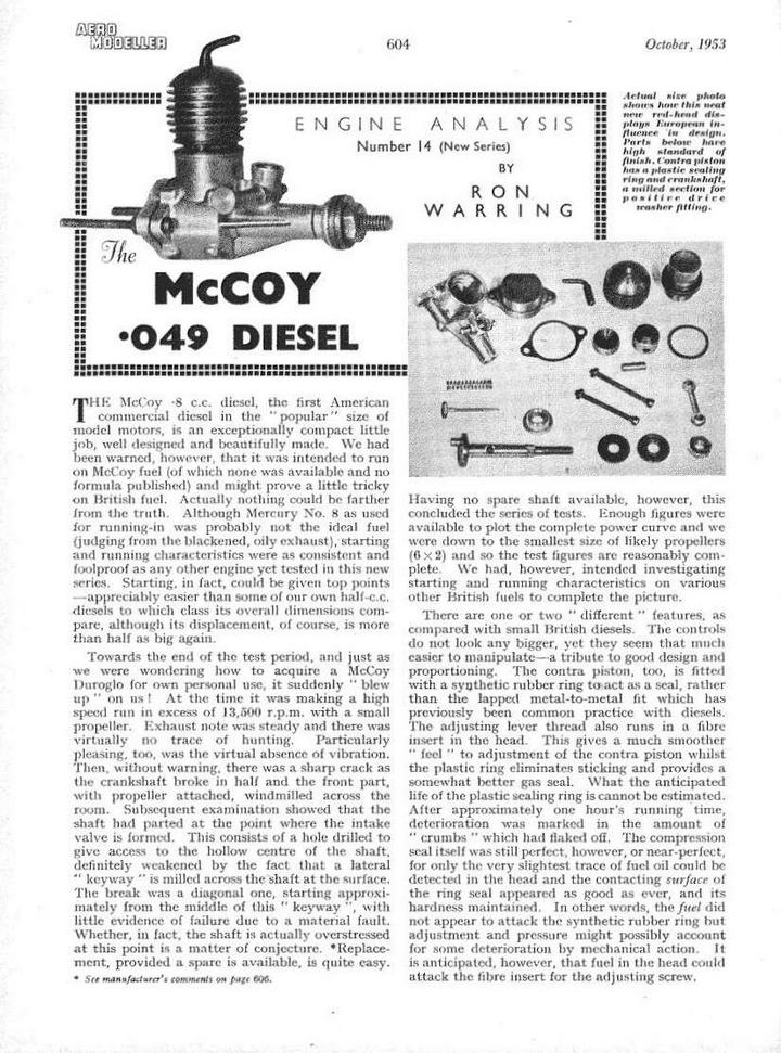 The 1953 McCoy "Duro-Glo" .049 Diesel -