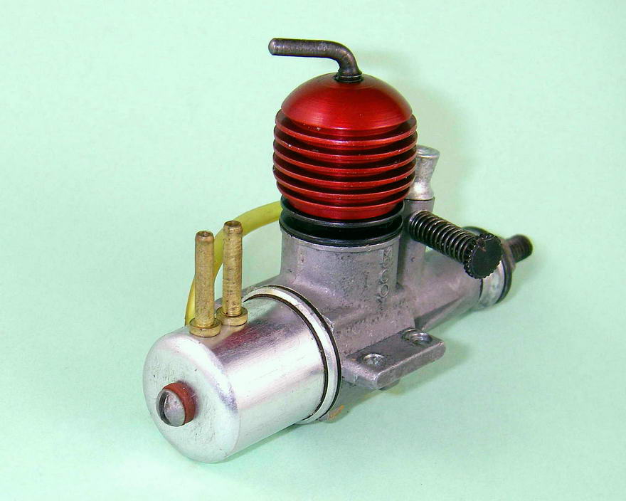 The engine sported a red-anodized screw-on cooling jacket as before, but this now had a far larger hole where the compression screw was formerly located. A separate cylinder head with integral glow element was clamped to the top of the cylinder by this cooling jacket. A seal was ensured through the use of a heat-resistant vulcanized asbestos gasket.