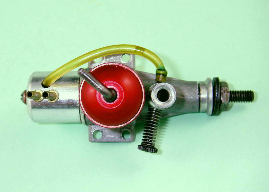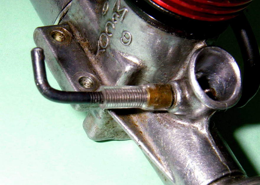 During its all-too brief production lifetime there were a few relatively minor changes. The needle valve used on the earlier examples was an over-long and very vulnerable steel wire unit which was externally threaded to mate with an internally-threaded pressed-in spraybar. Tension was provided by a split in the needle end of the spraybar. This didn't remain effective in service for very long, and a switch was later made to a spring-tensioned unit which was to all intents and purposes identical in design to that used on the companion .049 model and provided far more stable needle settings.