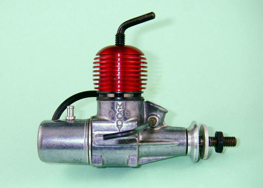 Like its 1/2-A stablemate, the "9" was a very good-looking unit with its red cooling jacket, chemically-blackened cylinder flange and highly polished castings. It was also very well made indeed and "felt" good right out of the box. Structurally, it was very sturdy and held up extremely well in service, with no reports of any significant weaknesses other than the vulnerability of the needle valve. In particular, I can find no reports of the crankshaft failure issue which had plagued the earlier McCoy Duro-Glo .049 diesel model.