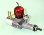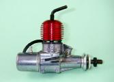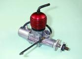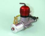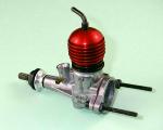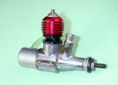 The cylinder of the new model was a radially-ported screw-in item like that of its predecessor but did not feature the integrally-machined cooling fins of the earlier glow-plug model. Instead, a red-anodized aluminium alloy cooling jacket was used which screwed onto the externally threaded upper cylinder liner. The red cylinder jacket and chemically-blackened cylinder flange set off the highly polished crankcase casting nicely, resulting in a very handsome-looking unit.