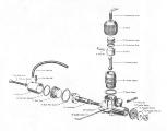 The valve consisted of a square-section plunger which bore against an internal lip formed a little below the venturi mouth and was held in that position by a very light spring. The square section of the plunger in the circular lower venturi bore retained the plunger in a central location within the bore while allowing the passage of gas past the plunger when the valve was open.