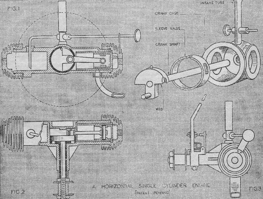 Lawrence Sparey was a regular contributor, with a series titled My Engine appearing in the April 1943, and January, February and May issues of 1944. But it is his June article titled A Horizontal Single Cylinder Engine that prompts all this verbiage. In his article, Sparey concludes that all model aero engines are variations on the motor-cycle theme and sets out to design "...a serious attempt to evolve an engine which will suffer none of the inconveniences so far endured, and which will, besides, have additional features inherent in the design, especially adapted for model aircraft use."