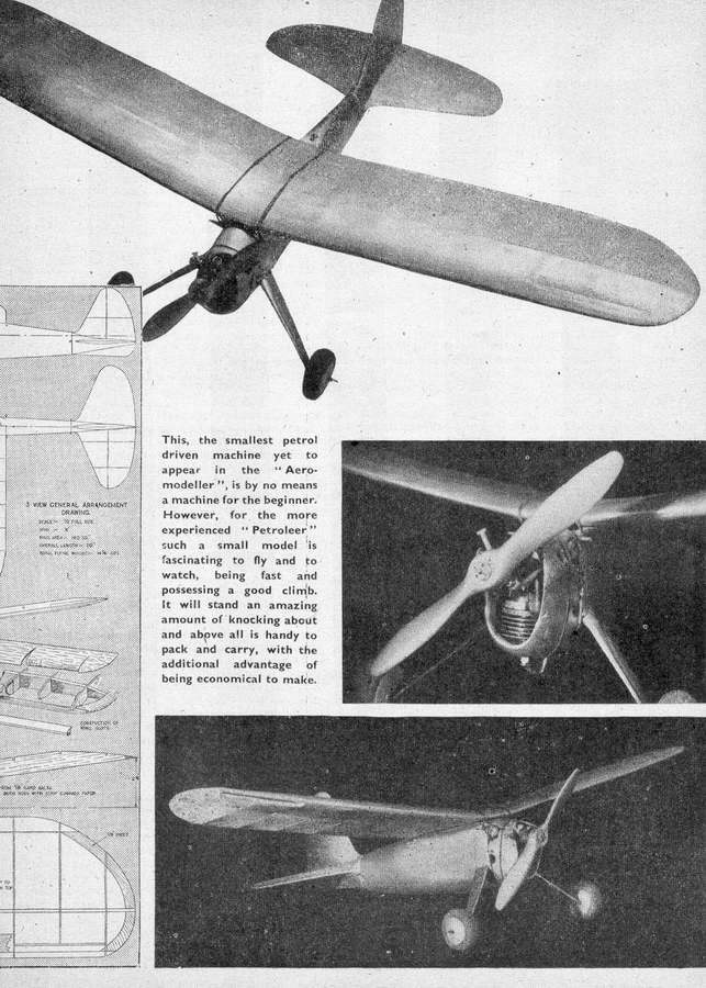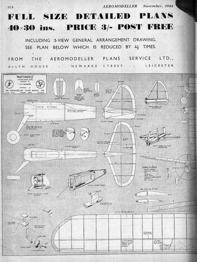 He also designed some cheeky sports models called "Antspantz" and "Natsneez". Copies of the Natsneez are regularly seen tearing about making havoc at vintage rallies. At 31 inch span for a 2cc petrol engine, in it's day this was a high wing-loading high-speed rocket. Even with a modern 1cc engine, the model is ballistic! His original model was powered by an inverted petrol engine of about 2cc. The plans, as such, was published in Aeromodeller, November, 1944. A few years ago, one of his home built engines came to me for an attempted but largely unsuccessful restoration. I believe that this was the engine he used in his Natsneez.