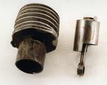 So what of the engine? The man was a sculptor and musical instrument maker by trade. The February 1962 American Modeler biography credits him with 26 home made engines, several built without the benefit of a lathe! Certainly his innovative and individualistic approach shows in both the external appearance of the quirky little 2cc ignition engine, and on the inside too.