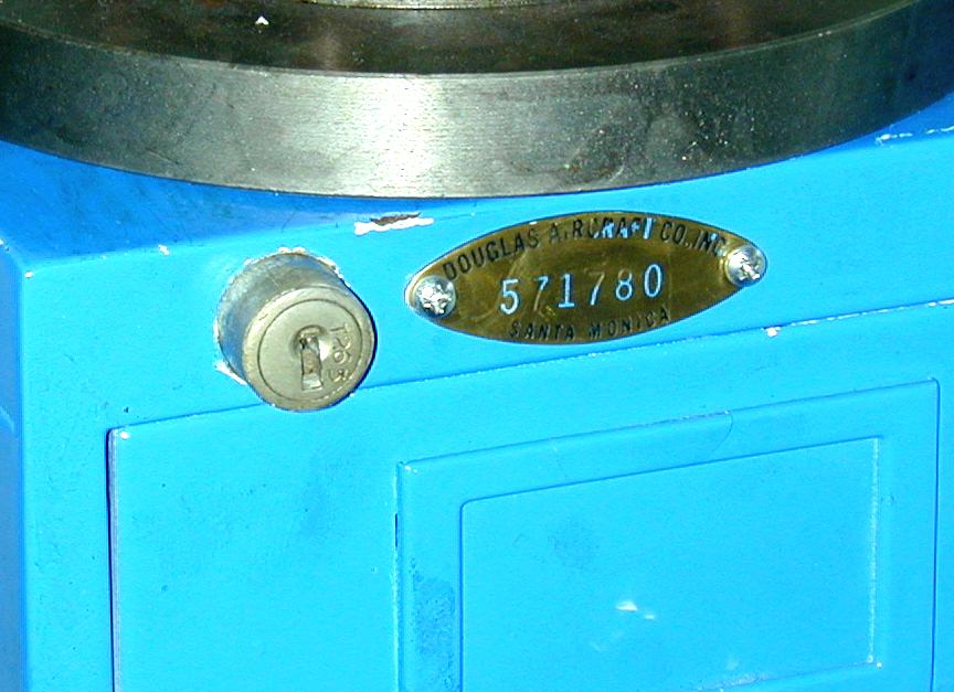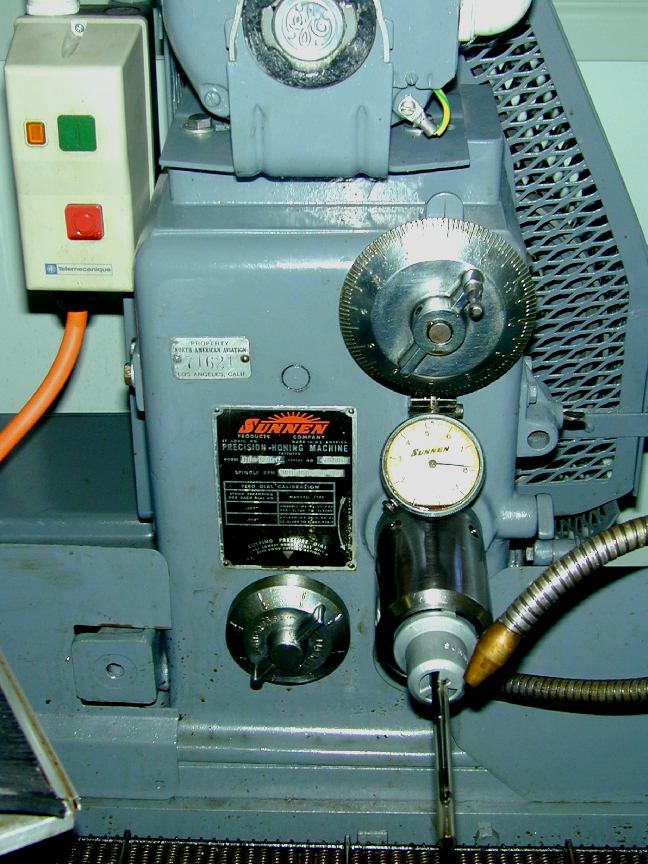 Peter is proud of the provenance of several pieces of workshop equipment, much of it bought from used machinery merchants and expertly refurbished by himself. For instance, his Sunnen hone seen here bears a plate proudly bearing the name North American Aviation. He has no idea what purpose if served in their plant, but that does not really matter; just the fact that it served some purpose within such a hallowed name is sufficient. In another aircraft manufacturing connection, a file cabinet has a Douglas Aircraft Corp plaque rivited to its corner.