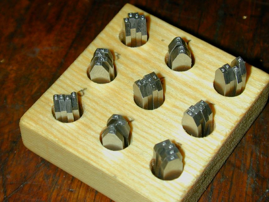 While on the subject of numbering, here are the number punches used to stamp the cases. They look spectacular, but began life as four sets of common, garden-variety MSC 1/32" number punches. First, Peter ground the sides very precisely in relation to the location of the number so four can be stacked to give the correct number spacing and the four-digit number stamped at once (explaining why there are four sets). Next, Peter painstakingly measured the baseline height of each numeral and ground the top and bottom of the punch so that all were exactly the same height, and all numbers shared a common, precise baseline. He says that as expected, no two were alike—all had to be individually measured and ground. He rates the surface grinder and magnetic chuck as one of the most essential pieces of workshop equipment. There's a matching wooden top for the stand. This prevents rust and all the production tooling (fully hardened tool steel) is kept in an old wooden wardrobe (ex Post Master General, if I recall correctly) for just this purpose.