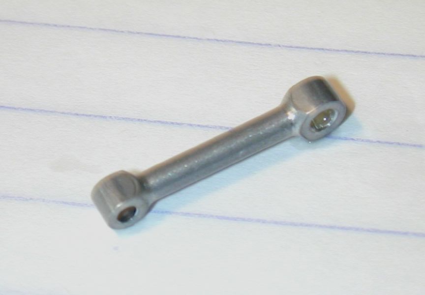 I especially liked the tiny conrod pictured here. It's aluminium, fully machined, and has the ends formed using the method I'd deduced while restoring a Taipan for a reader. This method, fully described on one of the Taipan Restoration pages, produces very clean profiles, simply and safely. But that only takes care of about 280 to 300 degrees of the end. The remainder must be machined integral with the rod shank in such a way that if merges neatly with the profile job. These rods are just about as perfect as you can get.