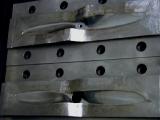 This, obviously, is the tool used to profile the cooling heads. Naturally it's hardened tool steel. Now look closely. Note that each cutting blade has the correct front and side rake, and the inside and outside corners are perfectly rounded to form both fin and gap profiles. I was trying to imagine how I'd grind this on the Quorn until Peter put me out of my misery saying it was wire-cut with an EDM. The other end of the block has a like shape—makes sense; after the machine is programmed to cut one, why not bash out another on the other end as a spare and to increase the time between sharpenings. Tools like this (and a honkin' big lathe) reduce to seconds what would take me tens of minutes, a fin at a time on the poor little Myford.