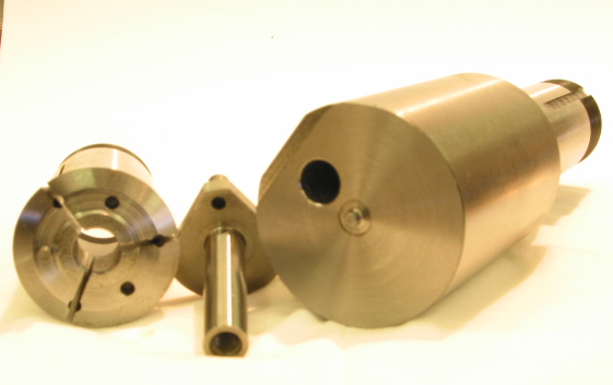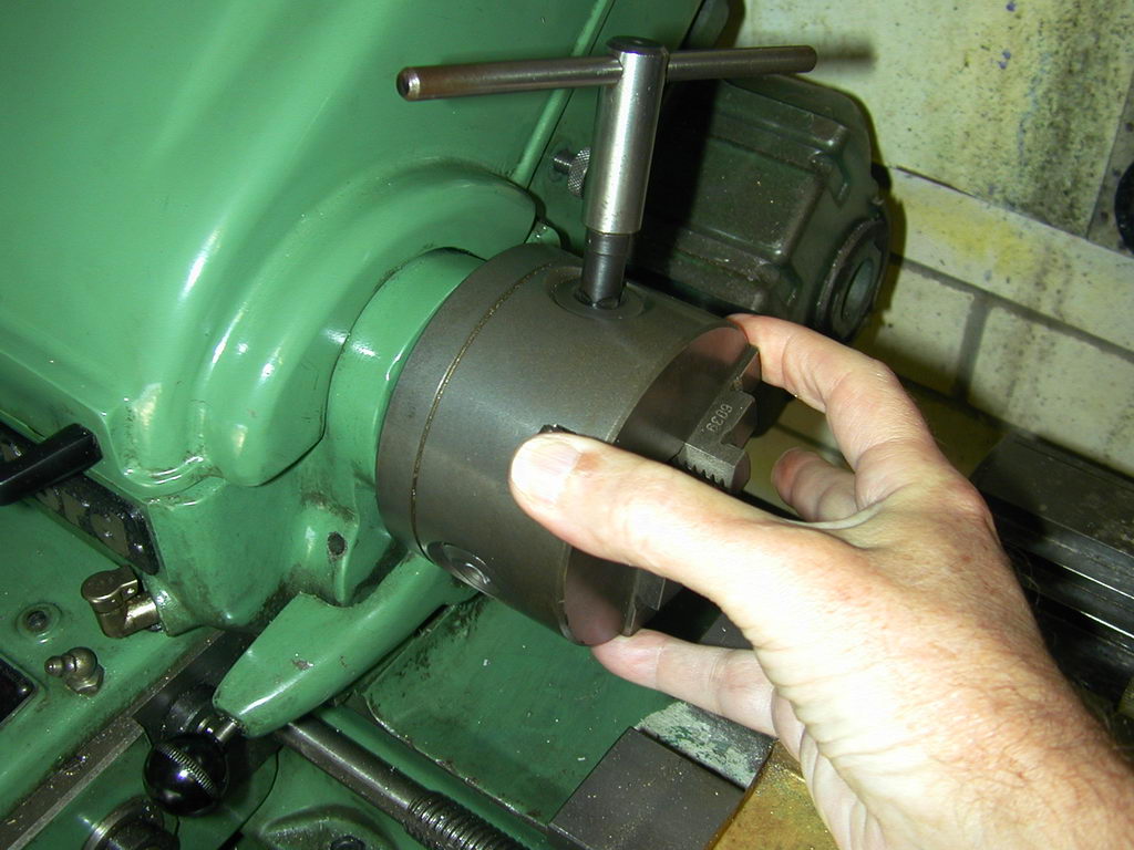 The 3C collets used the way David has, are the bees knees for this job. The collet is keyed into the closer, so it can't rotate. Then the shaft is keyed to the collet with a 1/8" pin in shear (maybe hardened), so the shaft is not going to rotate, hence no teeth-clenching required. For one-off shafts, drilling a collet for the pin is probably out, but a correct sized collet exerts tremendous clamping force on the work, so this is still the best approach. By the way, look at the pin in the center of the offset crank turning fixture shown in the second photo. This will also prevent unwanted rotation of the shaft during crank-pin turning. Well worthwhile, especially if you're making 150 of them by hand!