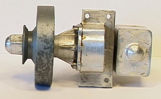 This little pitiful thing has been in some stuff that George Aldrich gave to me a long time ago. It is relatively crudely made and has all the characteristics of an engine built by a retired watchmaker who had never ever tired anything like this before. The little engine is only .098cc, or roughly .006 cubic inches, just over half the displacement of a Cox .010! It has a 5mm bore and stroke, The little shaft is 2mm and the crank pin is only 1.5mm. Now comes the horrible part. The backplate is threaded with a pitch of 1.5mm, which resulted in only 1 1/4 threads - looks more like a corkscrew than a thread. The cylinder is also roughly threaded, probably with a die, and has a pitch of 1mm.